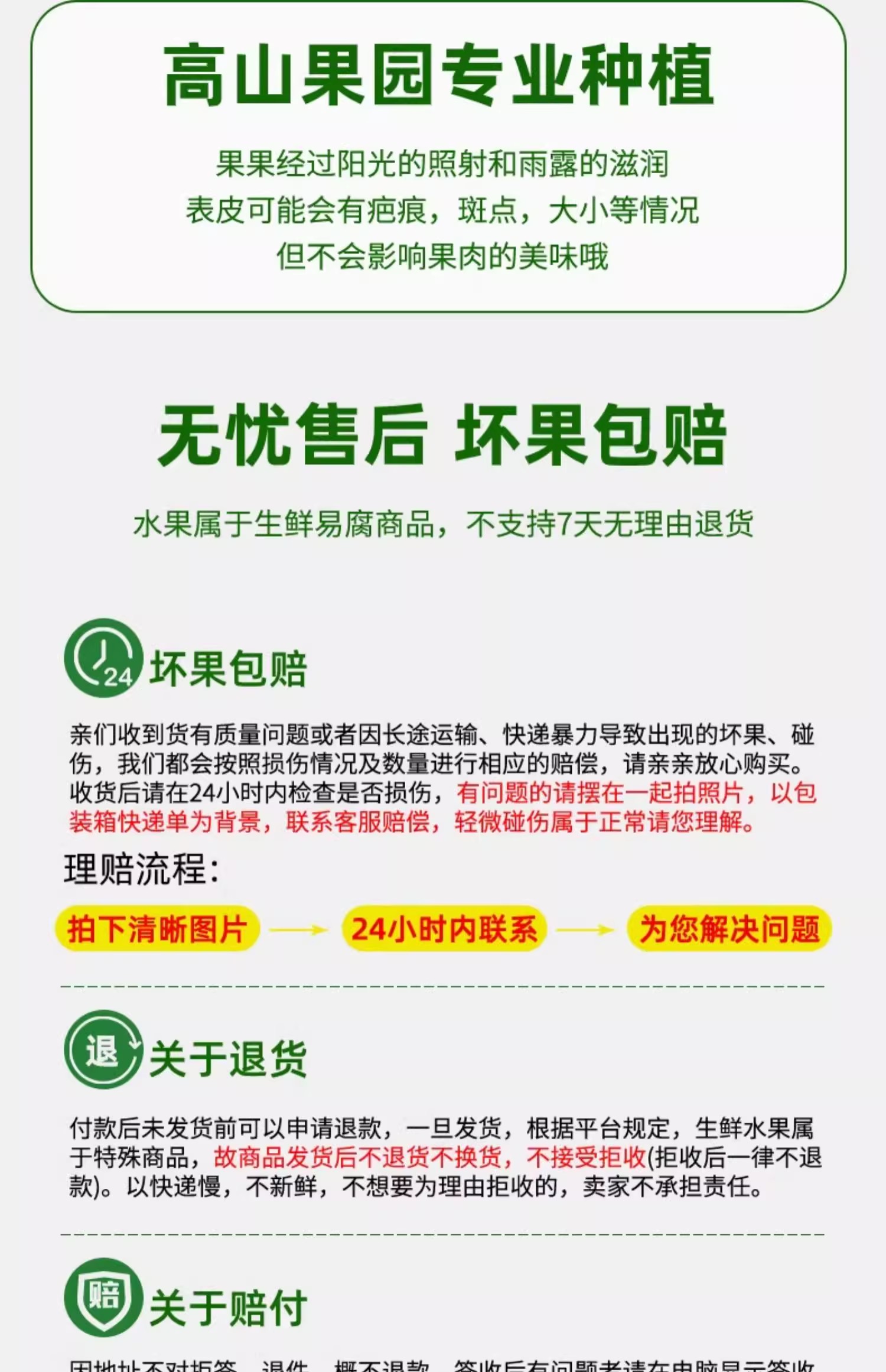 晚到赔 · 坏损包退 · 足斤足两 · 30天价保险 店铺发货&售后服务 · 不支持7天无理由退货