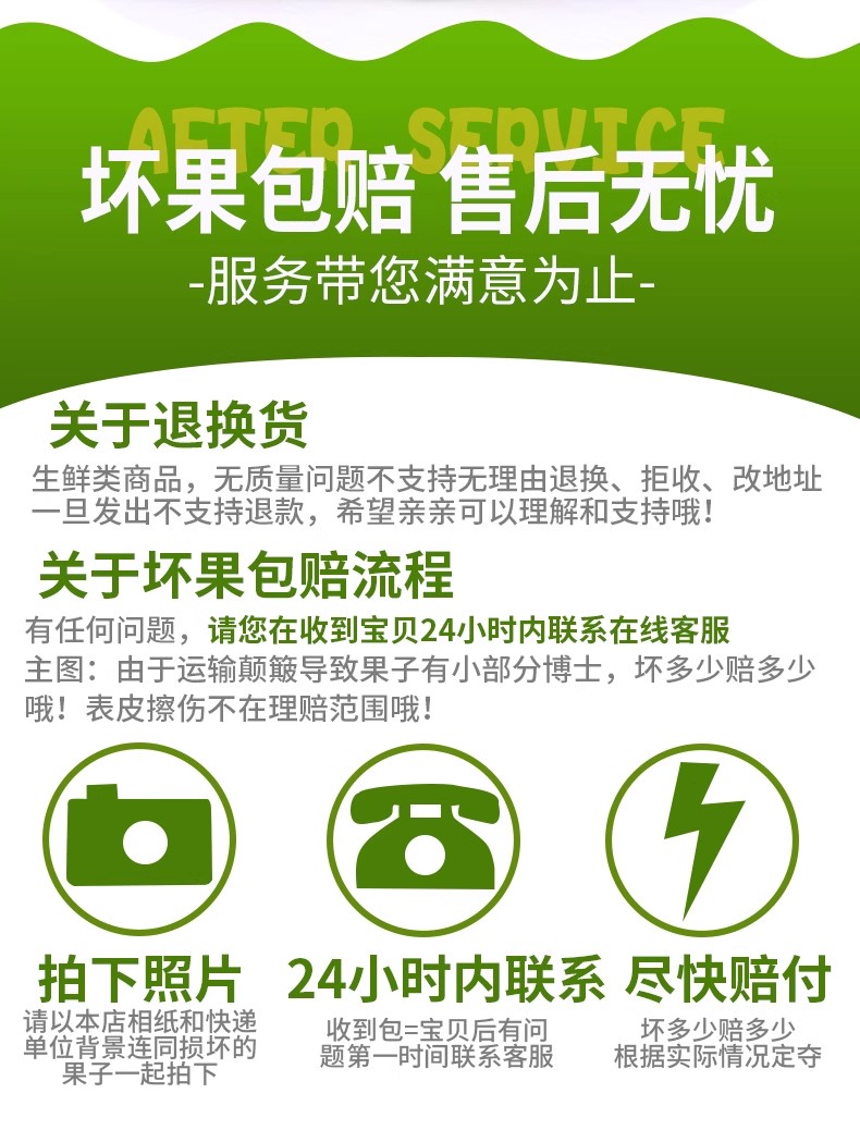 晚到赔 · 坏损包退 · 足斤足两 · 30天价保险 店铺发货&售后服务 · 不支持7天无理由退货